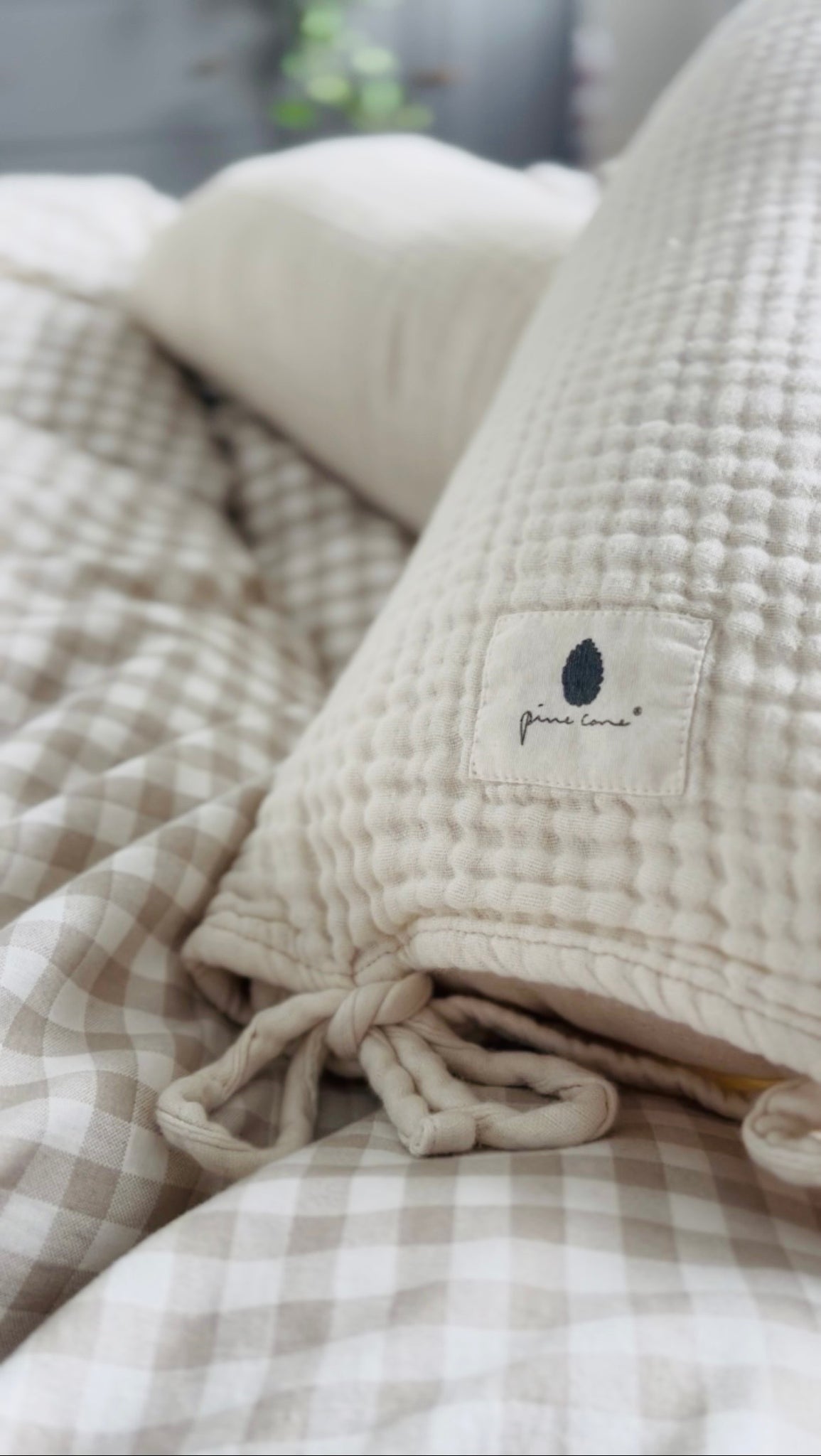 Se den fulde kollektionVores babysvøb er lavet i 100% økologisk bomuld – blødt, åndbart og skabt til hverdagsbrug fra dag ét. Den store størrelse på 120 × 120 cm giver dig én enkel nødvendighed, du vil gribe efter igen og igen – derhjemme, i barnevognen og på farten.